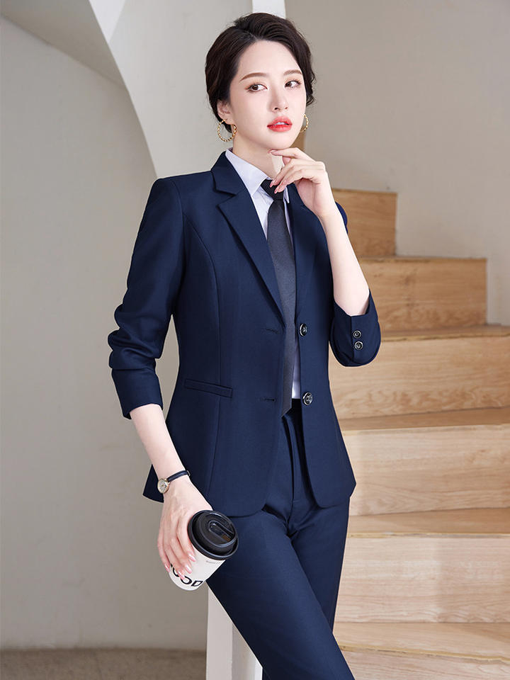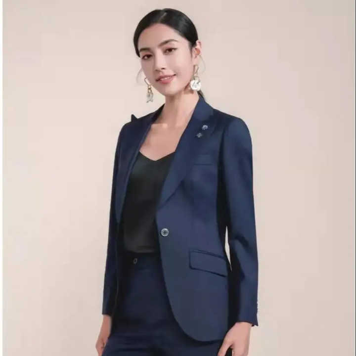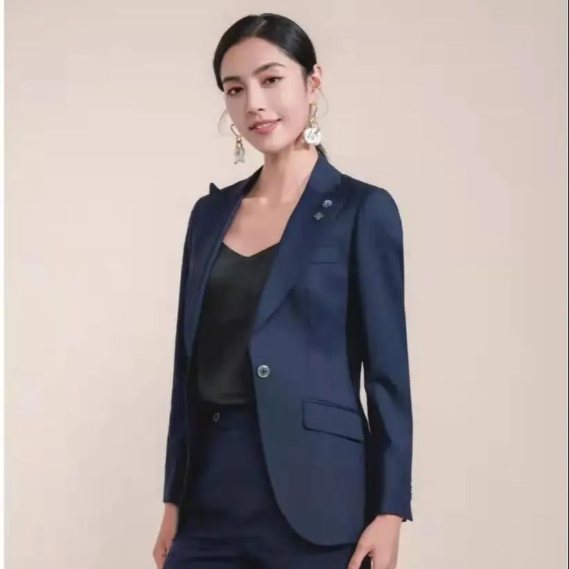 Elegant Women's Suit Set from Collection Single Breasted Blazer and Pants in Dark Blue 50% Wool from Worsted Fabric for Women
