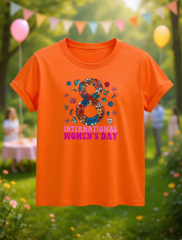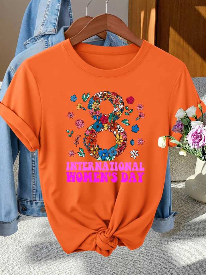 Elegant Women's T-Shirt Crew Neck Short Sleeve Floral Printed International Women's Day Top Spring Summer Fall 100% Cotton