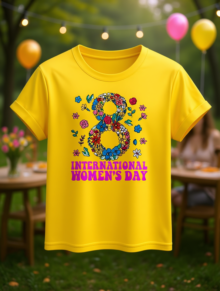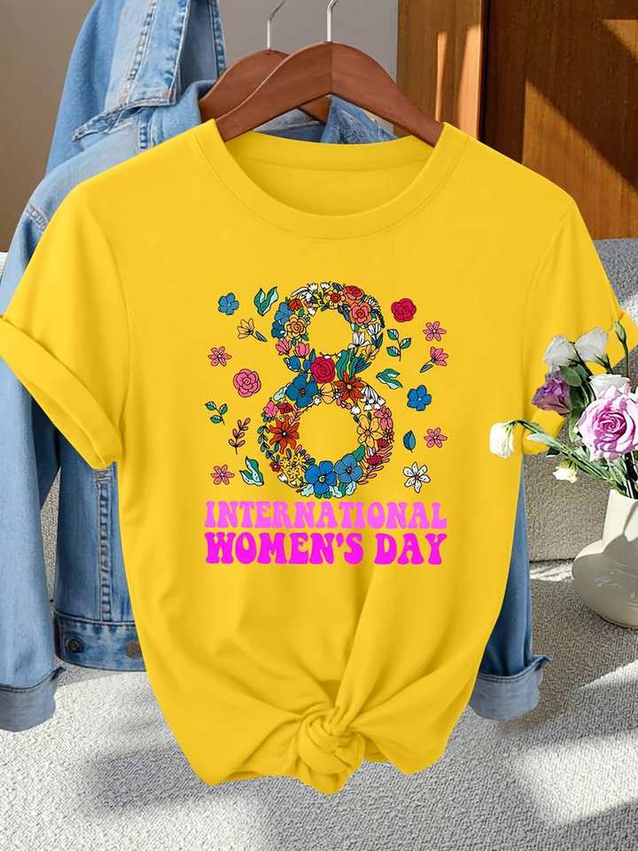 T-shirt elegante da donna girocollo a maniche corte con stampa floreale per la Festa Internazionale della Donna, top primaverile alla moda, vestibilità regolare, 100% cotone