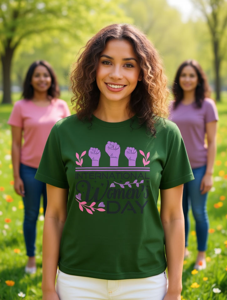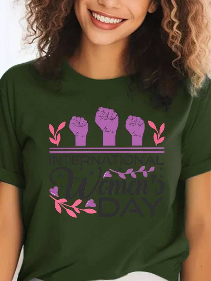 Elegante T-Shirt da Donna con Stampa per la Giornata Internazionale della Donna, Girocollo, Maniche Corte, Stile Casual, 100% Cotone, Vestibilità Regolare