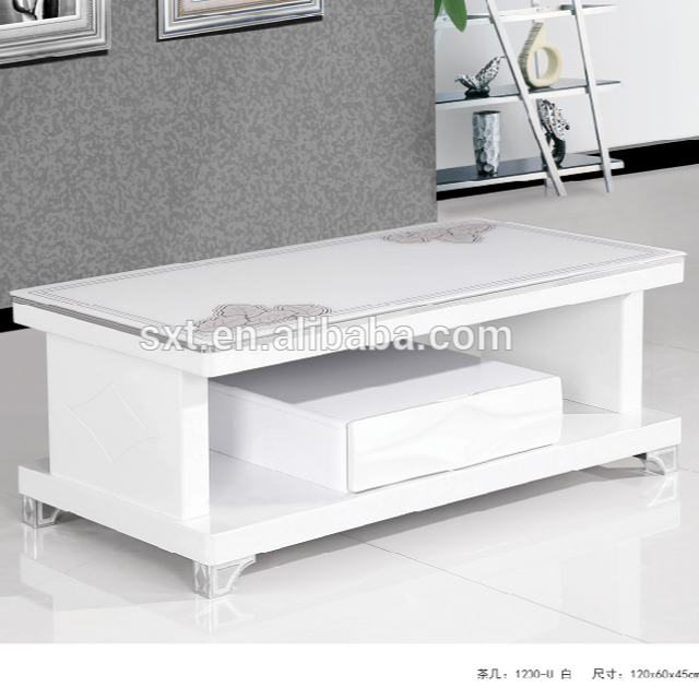 Elegant living room used center table mdf white lacquer coffee table