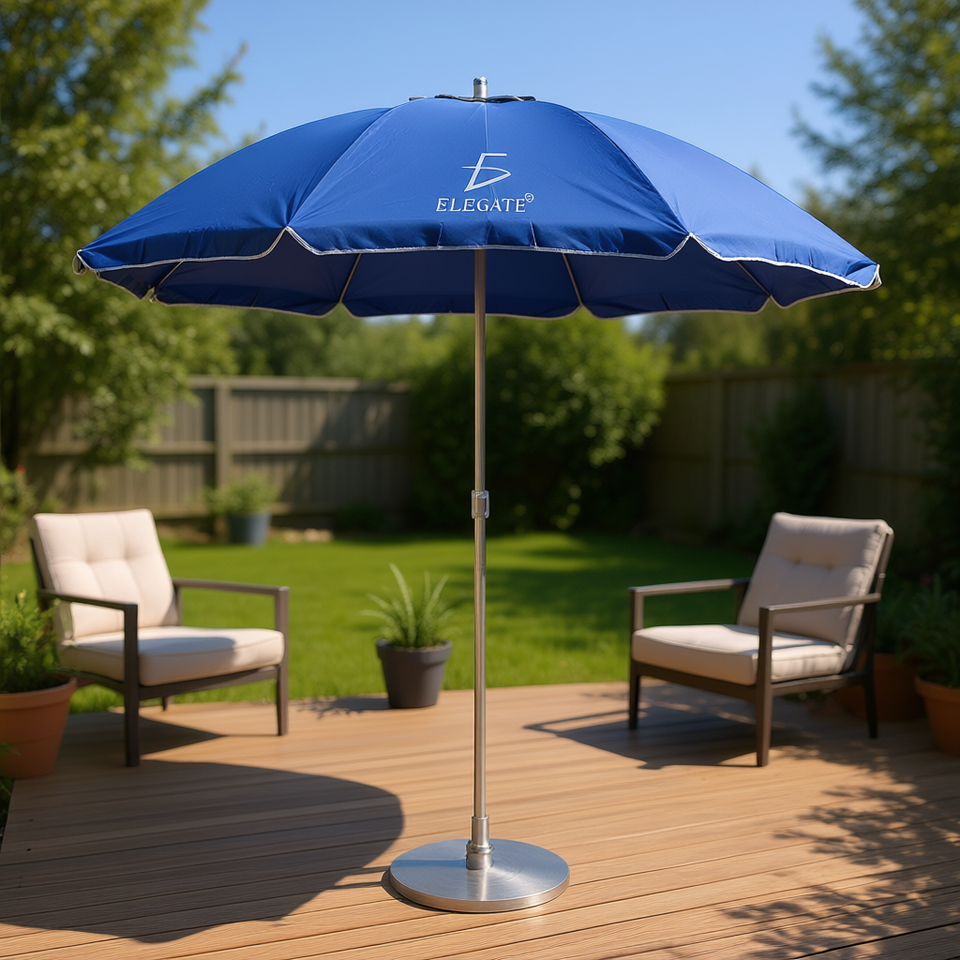 Elegate Outdoor Umbrella 9 Ft Manual Tilt Stainless Steel Pole Anti Uv Protection Blue Fiberglass Patio Furniture