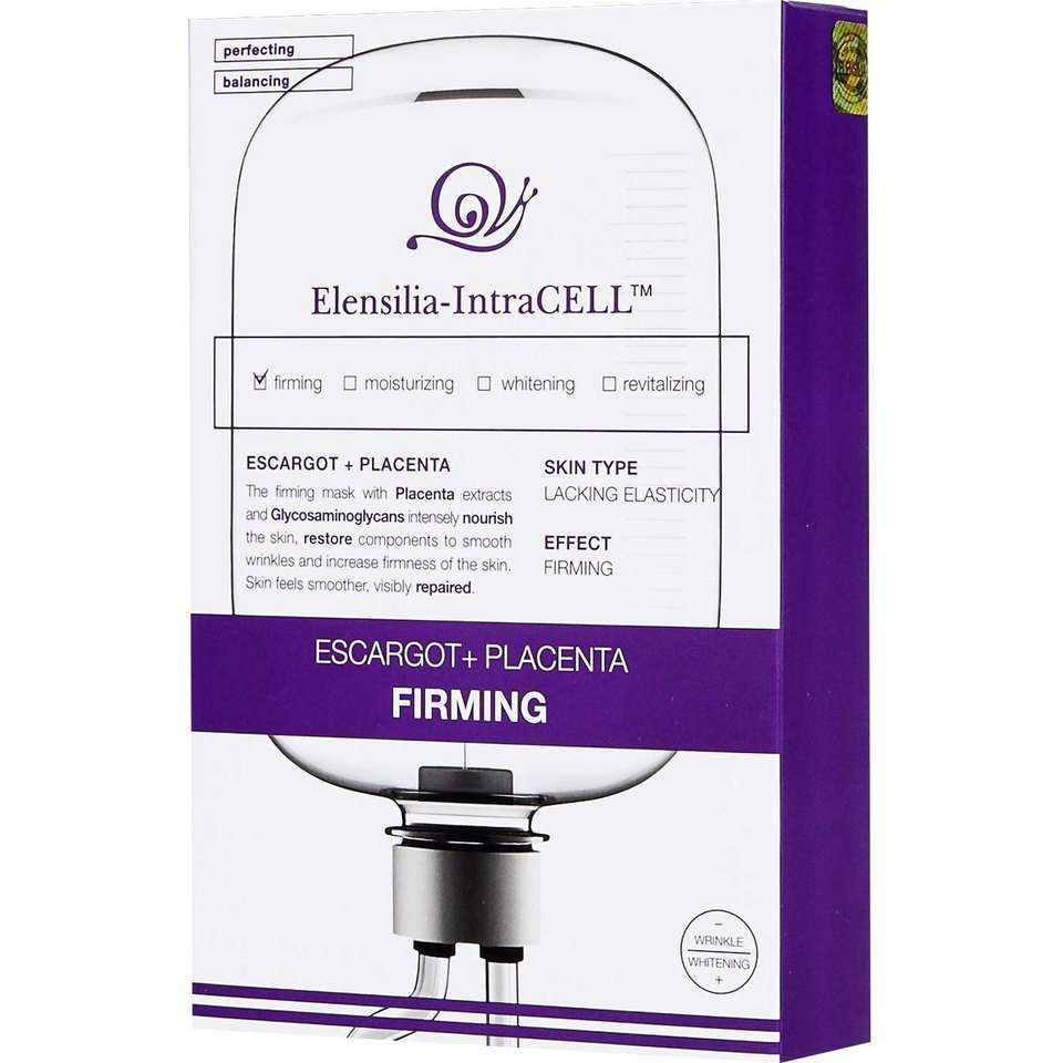 Elensilia Intracell Placenta Firming Escargot Skin Care Maschera Viso in Cotone, 10 Pezzi