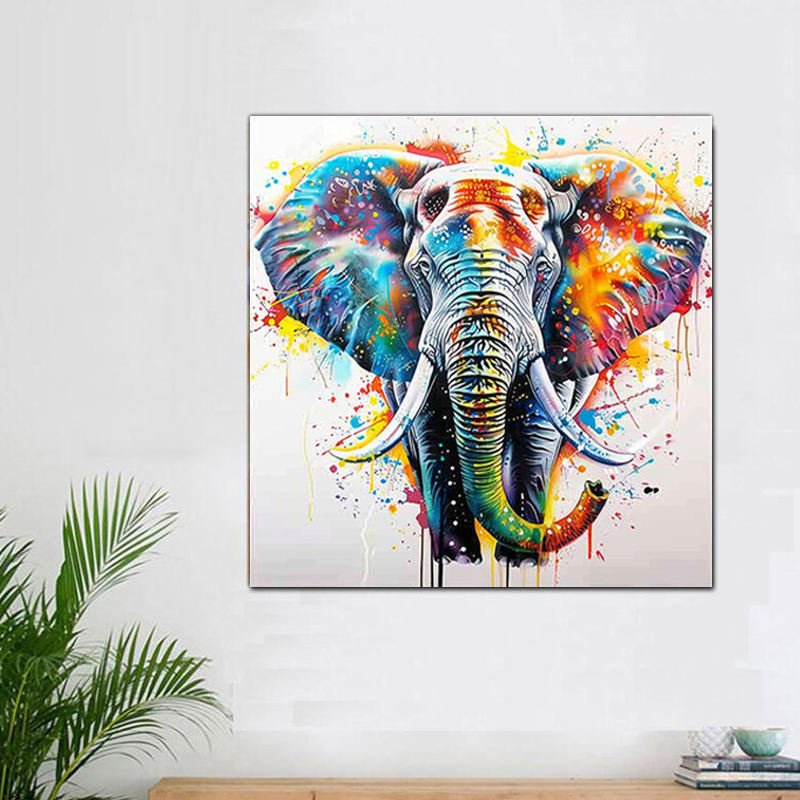 Elephant Canvas Wall Art Watercolor Elephant Poster and Print Colorful African Elephant Modern Abstract Wall Decor Painting