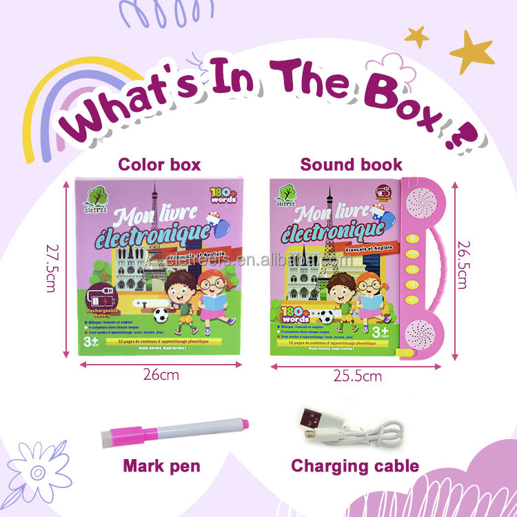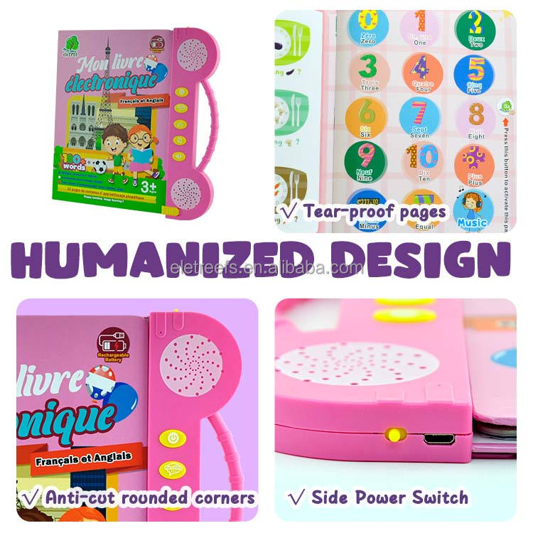 Eletree Libro Elettronico Educativo per Bambini con Parole in Francese e Inglese, Giocattoli Musicali e Libri di Produzione Musicale per Bambini Francesi