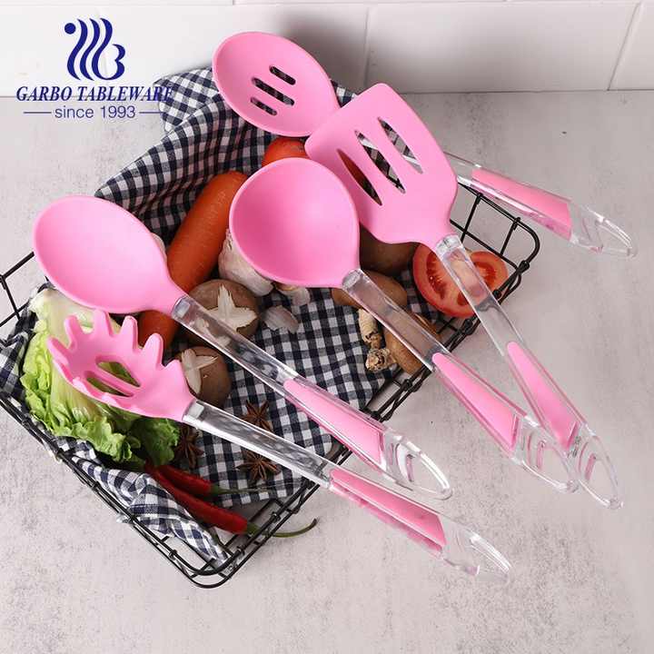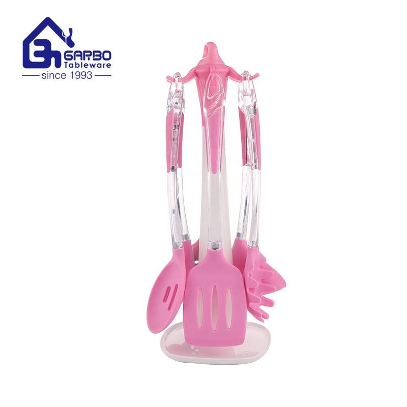 Eleva il tuo gioco di cucina con il nostro Set di utensili da cucina in Silicone rosa personalizzato resistente al calore da 6 pezzi-perfetto per la casa e l'hotel
