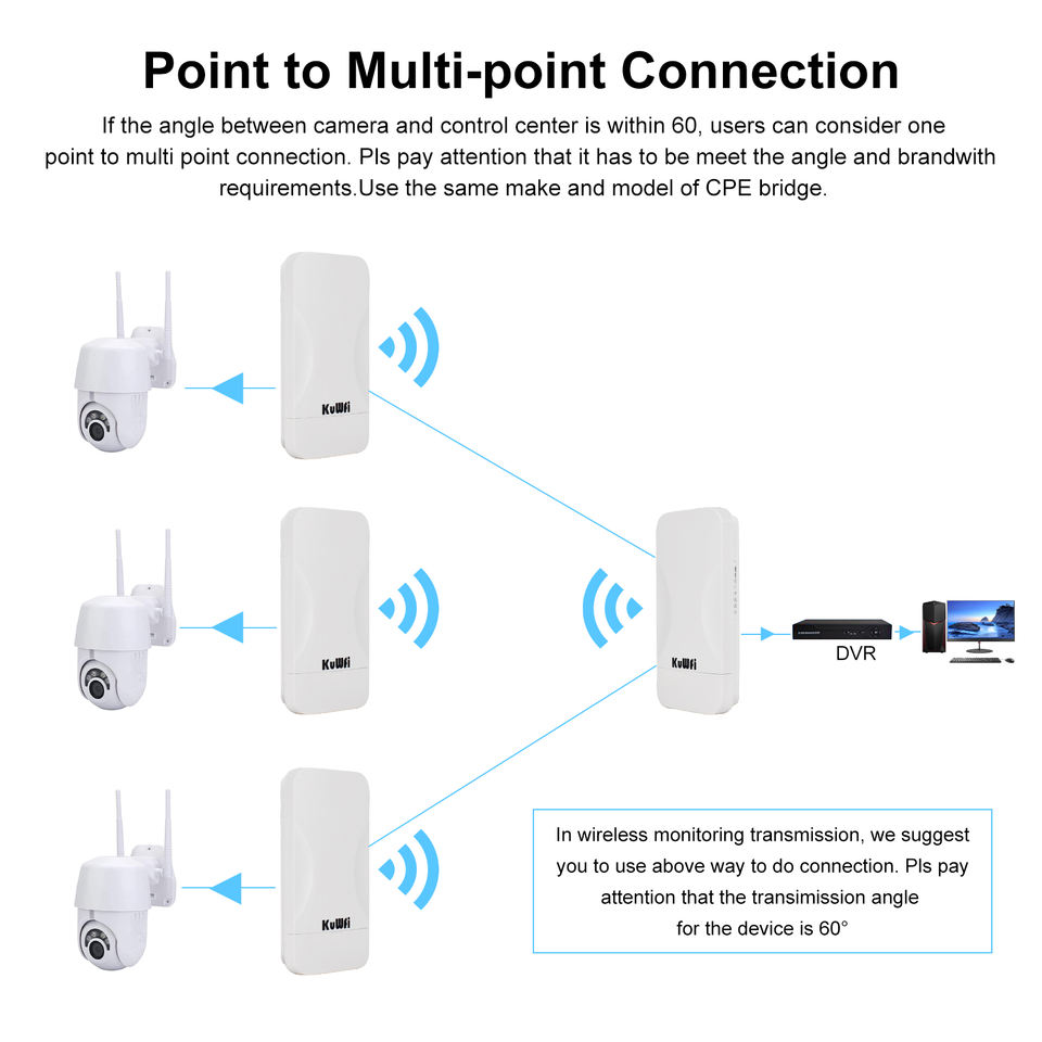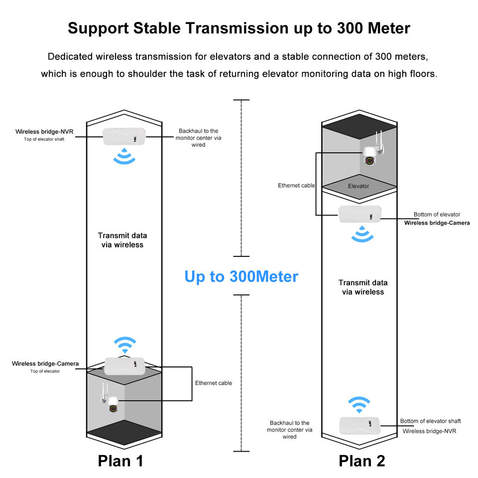 Bridge Wireless per Telecamere Elevator KuWFi WBDT201 2.4G con Porta RJ45, Rete Wireless PTP/PTMP, Portata 500 Metri, Bridge Wireless Esterno per Telecamere CCTV