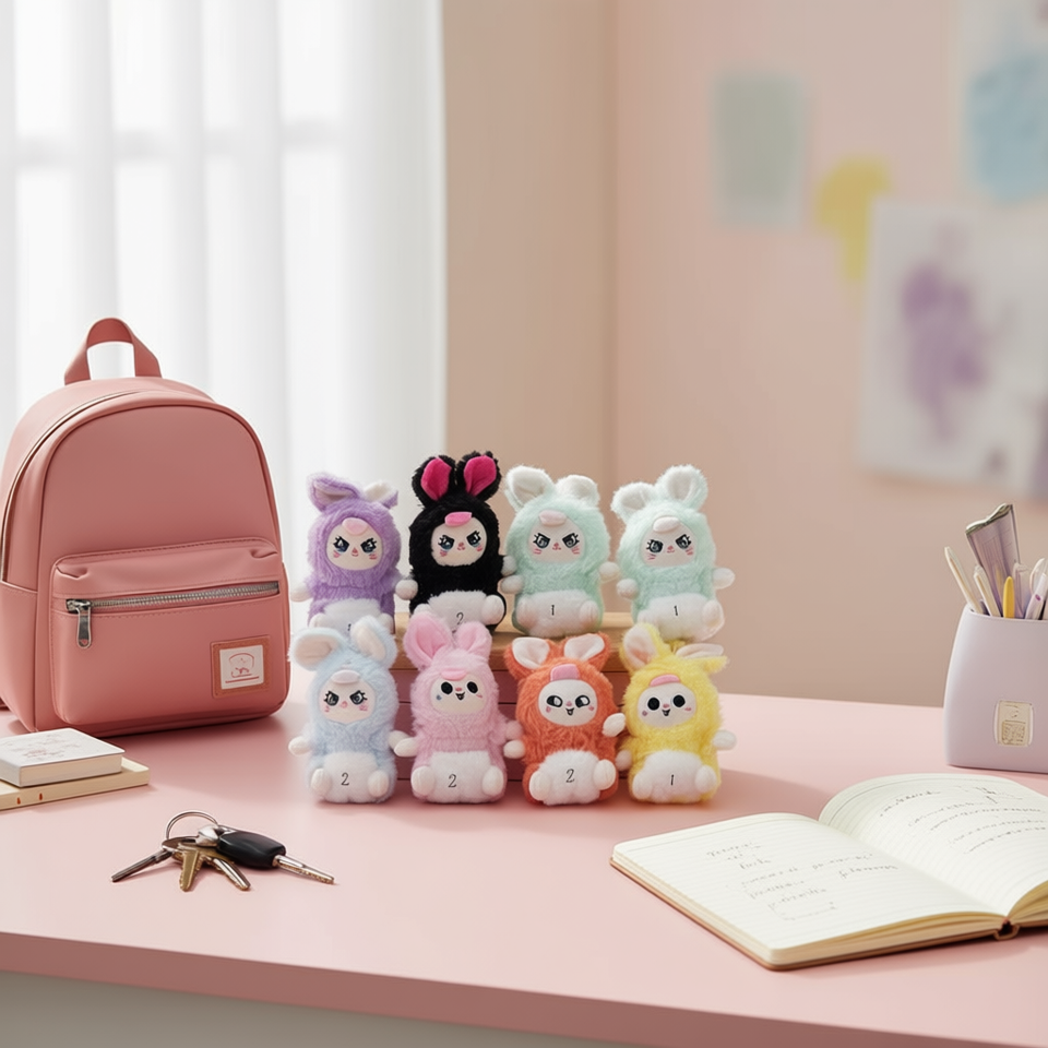 Portachiavi in peluche a forma di coniglio elfo 9x17cm, grazioso ciondolo animale per borsa o portachiavi