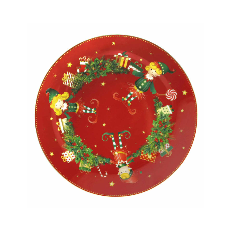 Piatto Decorativo Natalizio in Porcellana Rossa Elfomagia, 12 Pollici