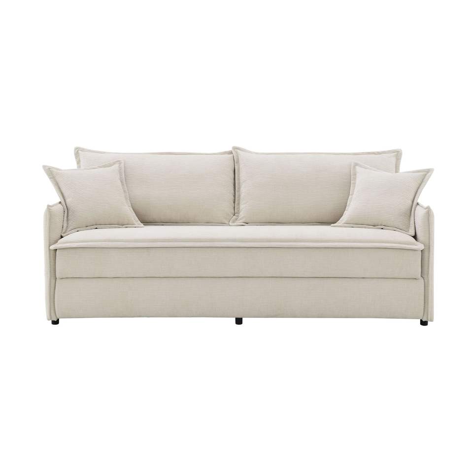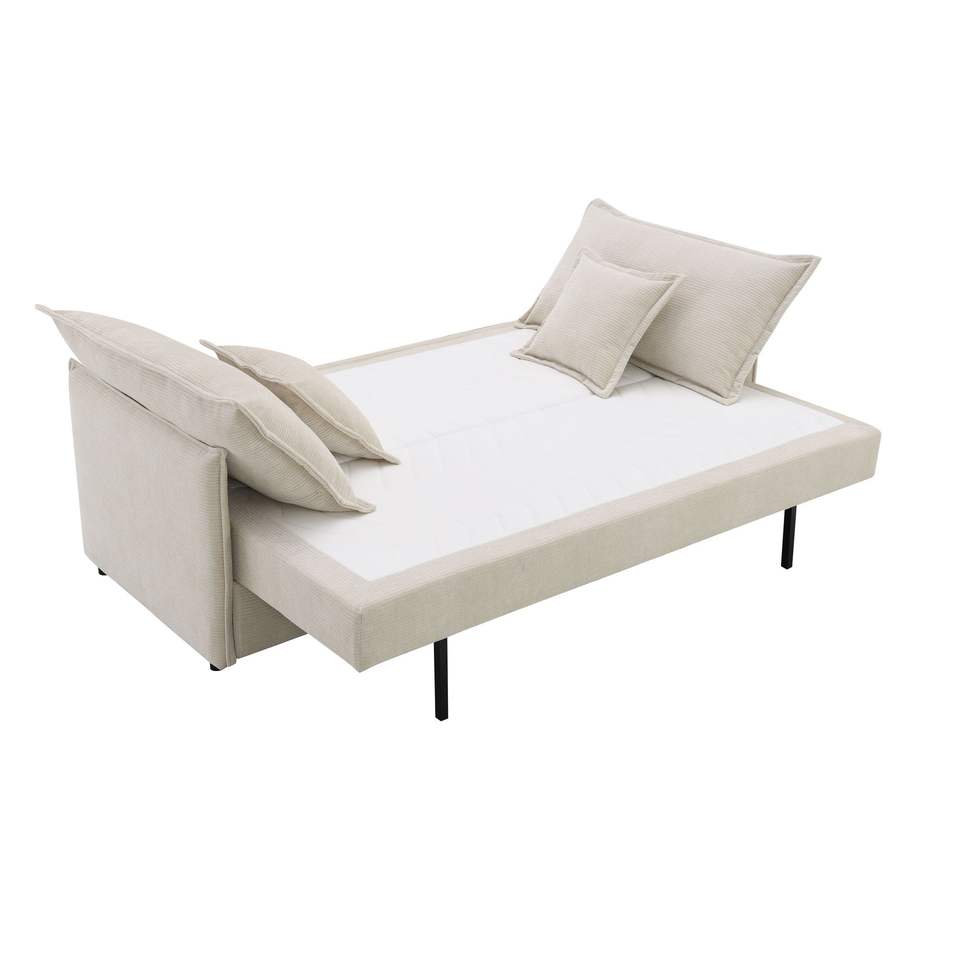 Divano Letto Componibile Elisea in Tessuto Beige con 2 Cuscini Decorativi, Comodi Divani Letto