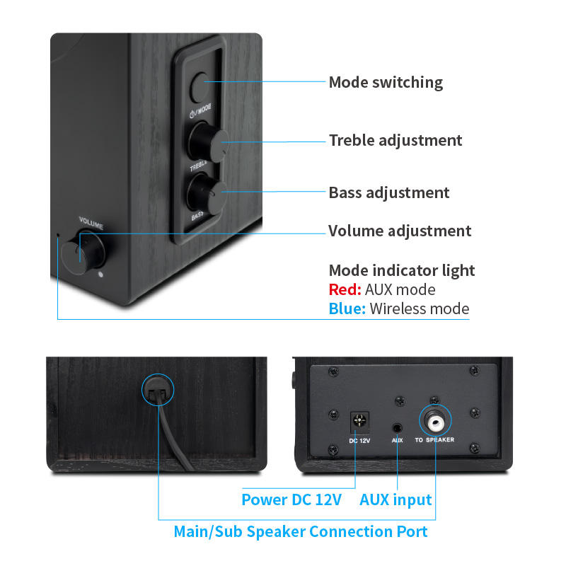 Caratteristica:Wireless, ingresso AUX, regolazione alti+gravi, telecomando
