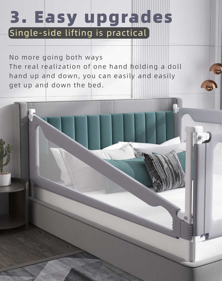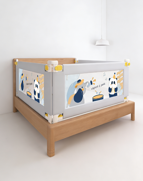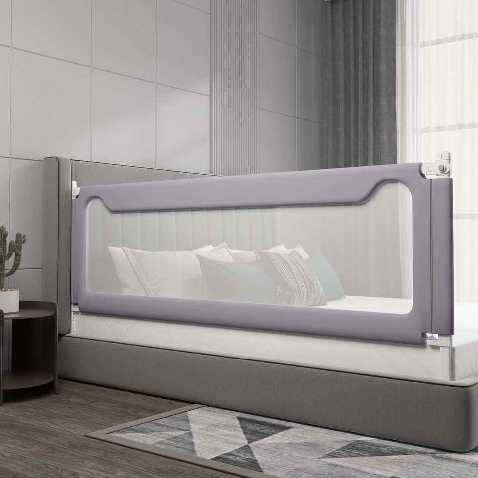 ElsaBaby Toddler Bed Rail Guard 1.8m Brown Fold Travel Safety Barrier 0-3 Years Mesh Panel Steel Frame EU Standard Eco-friendly