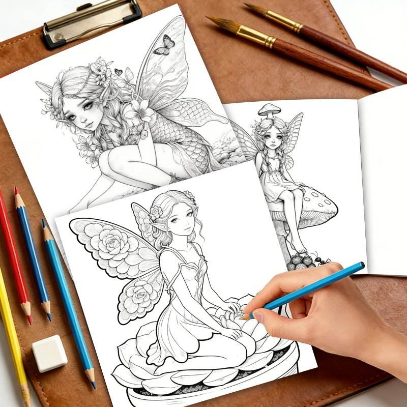Libro da Colorare per Adulti con Elfi e Fate, Design Unico, Libri da Colorare per Bambini per Alleviare lo Stress e Rilassarsi, per Studenti, in Confezione Convenienza