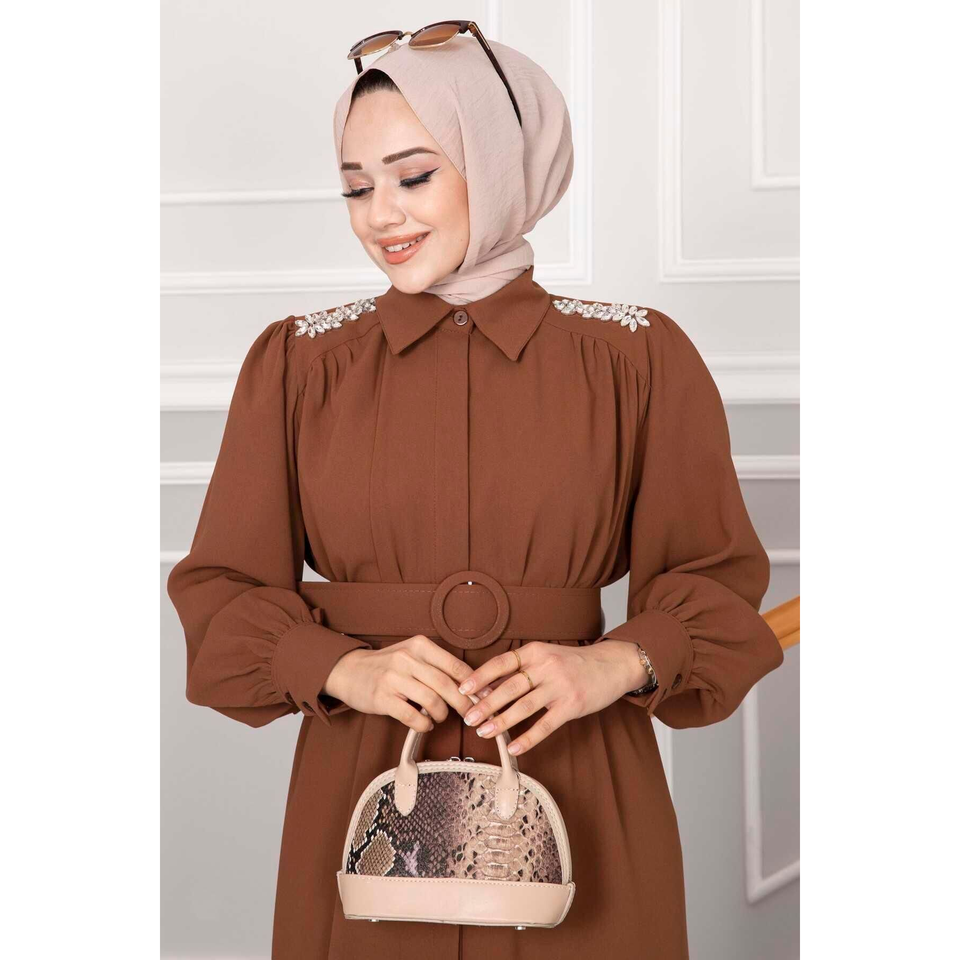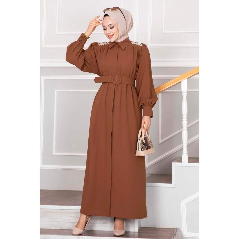 Elvira Hijab Dress Tan