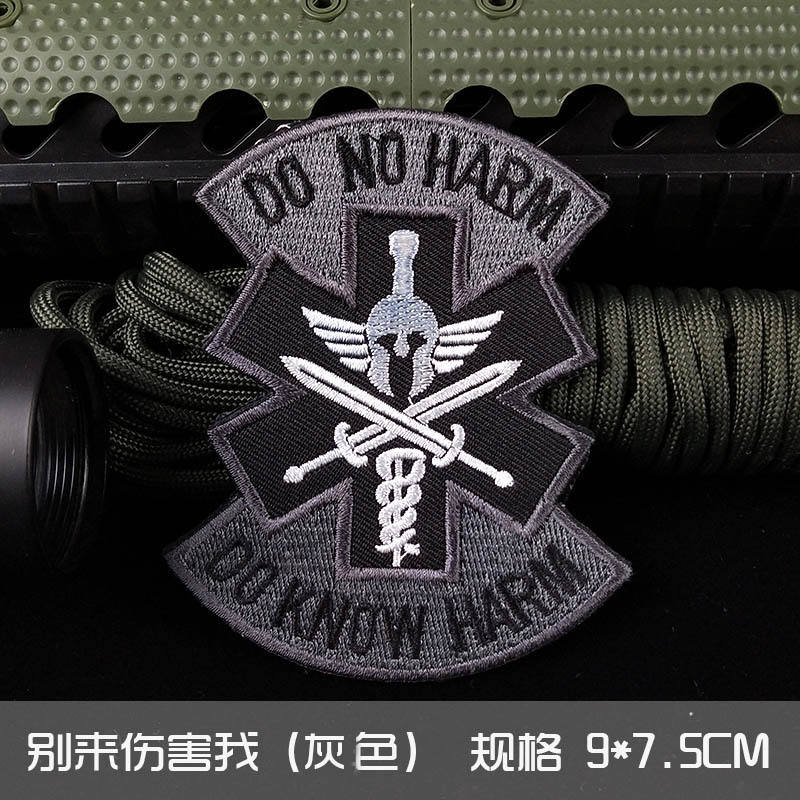Patch Tattica Ricamata Fatta a Mano 'Non Ferirmi' per Cappelli, Motivo Medico da Campo di Battaglia, Applicazione a Caldo