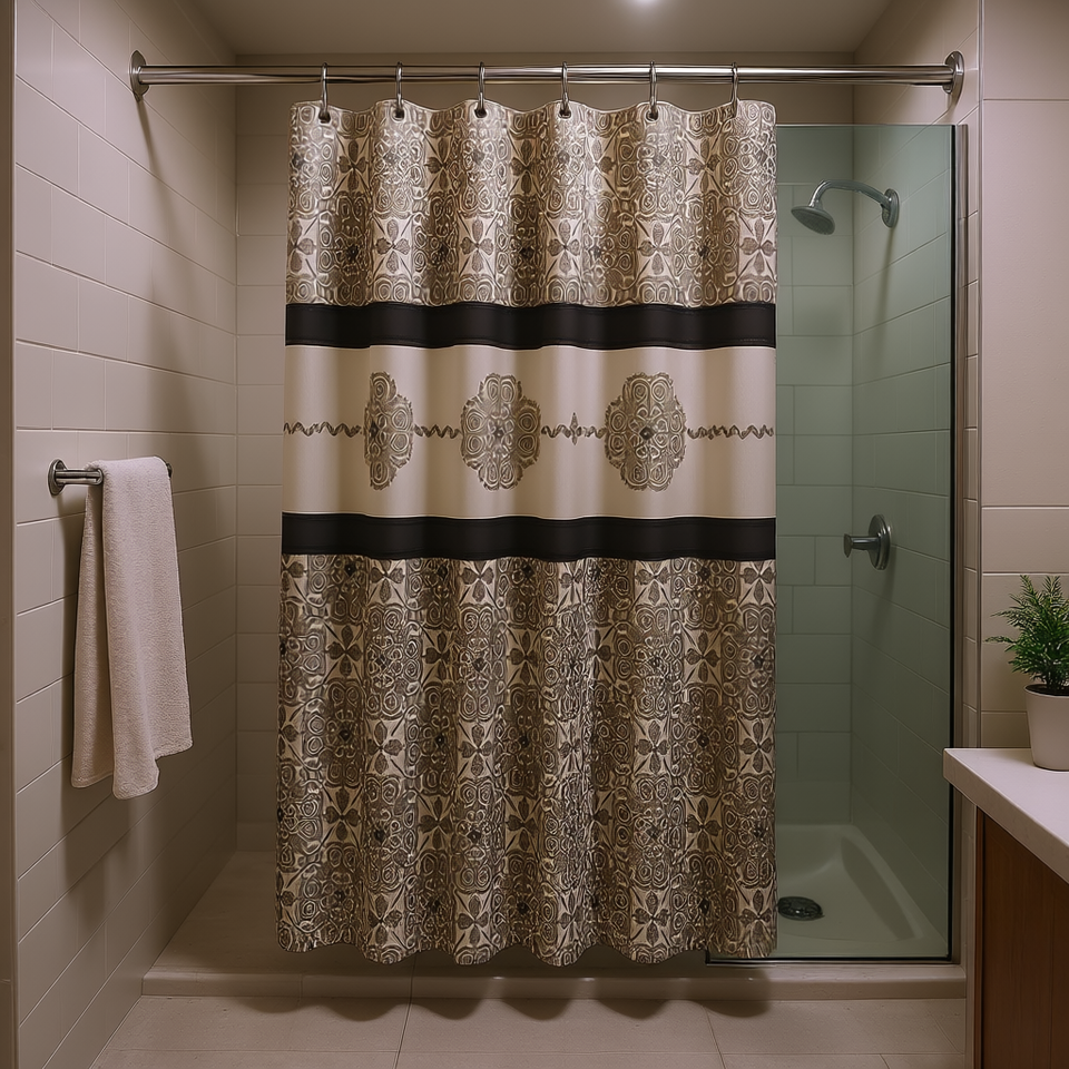 Tenda da Doccia Ricamata in Tessuto, Design Classico, Accessorio per il Bagno con Stampa Digitale