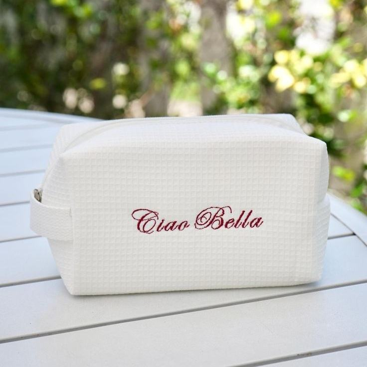 Borsa Cosmetica Personalizzata in Cotone Waffle Ricamato per Donne, Organizer da Viaggio per Articoli da Toeletta