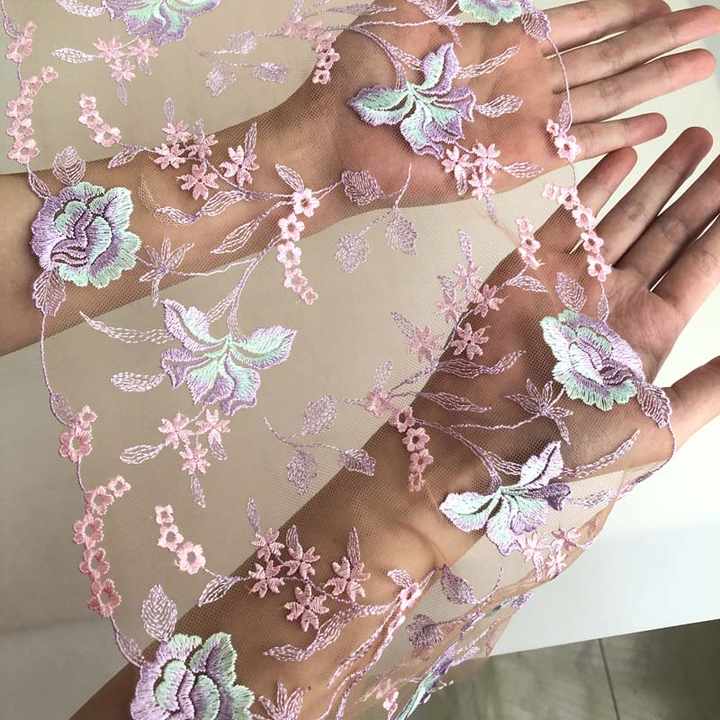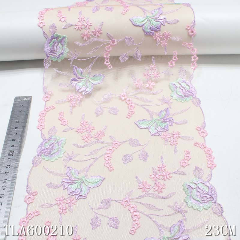Merletto ricamato fabbrica 23cm Tulle ricamato pizzo viola fiori pizzo merletto tessuti per donne Lingerie biancheria intima abito reggiseno