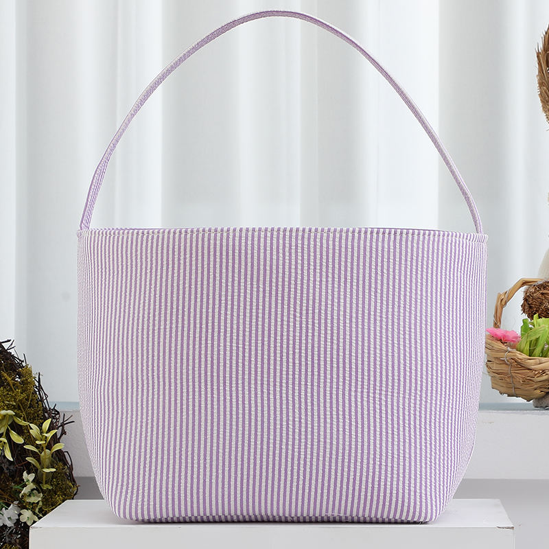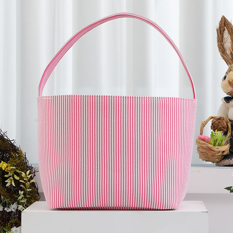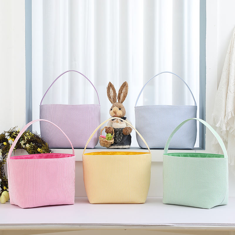 Ricamo personalizzato per la casa per le vacanze bambini Seersucker cesto di pasqua a strisce di caramelle