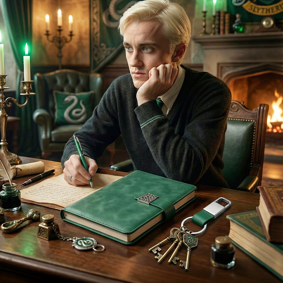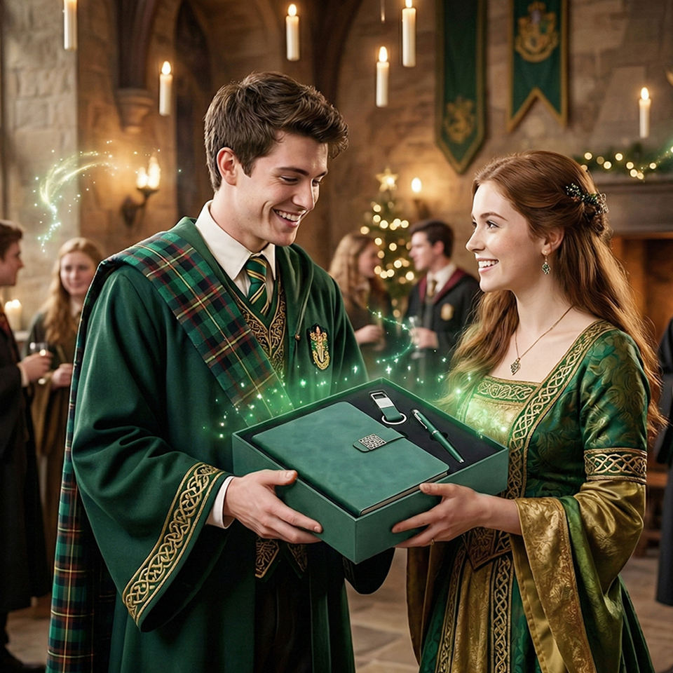 Set Regalo Aziendale Verde Smeraldo con Taccuino, Penna e Portachiavi - Finitura Simil-Pelle e Chiusura Magnetica