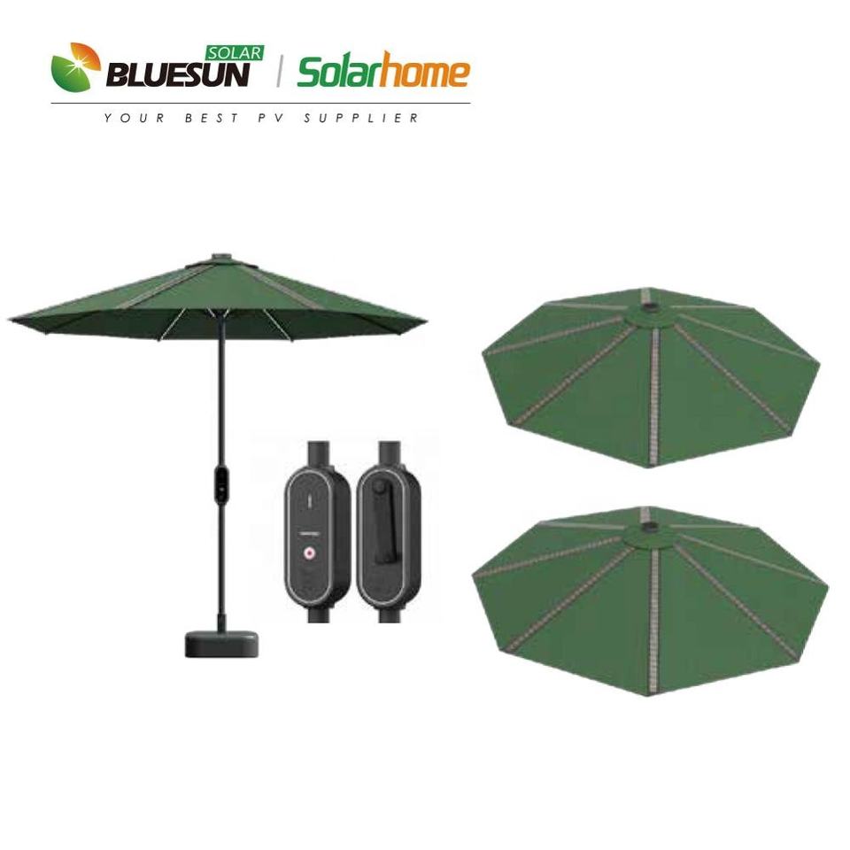 Ombrello con Pannello Solare da 50W per Ricarica di Emergenza, Carica Cellulare all'Aperto