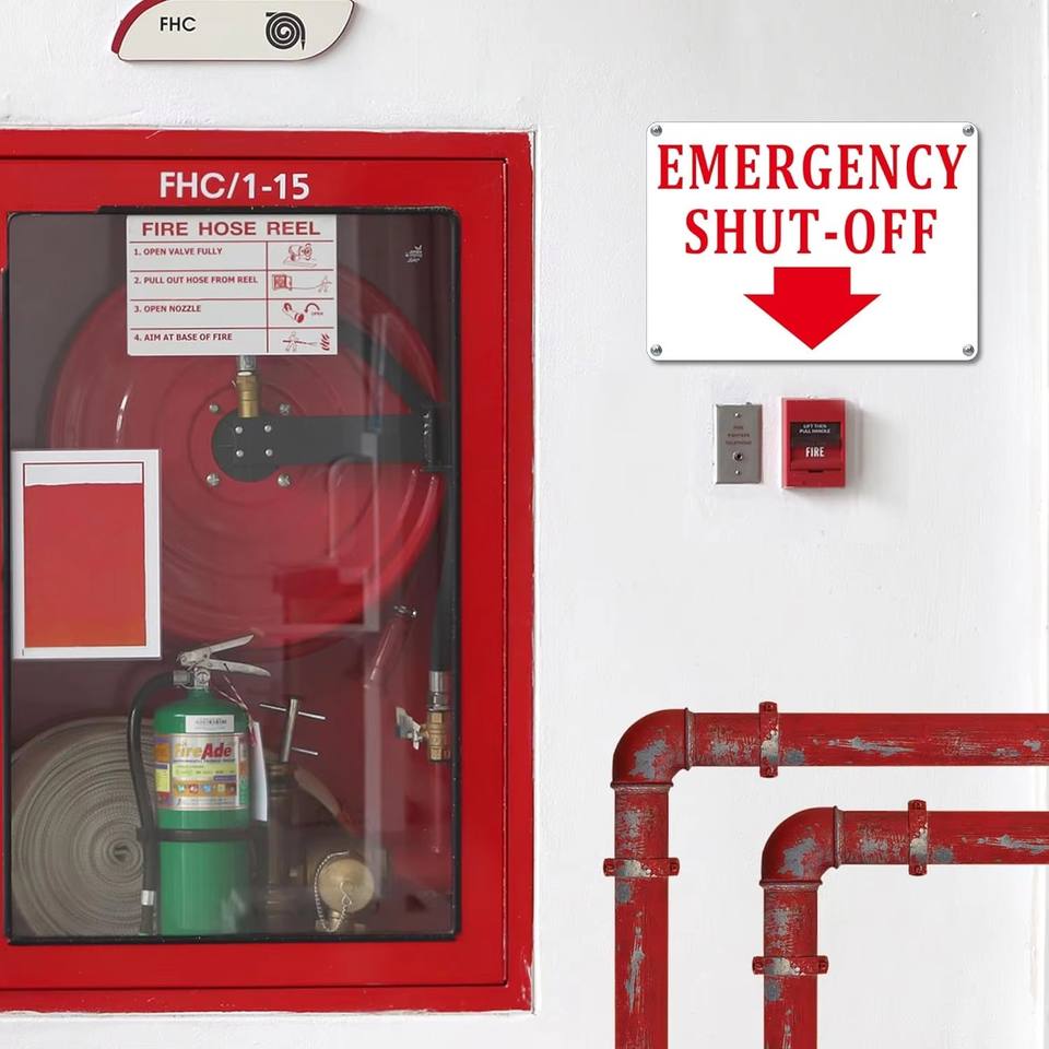 Segnale di arresto di emergenza, avviso di arresto di emergenza in alluminio, segnale di identificazione per lo spegnimento delle apparecchiature impermeabile e durevole