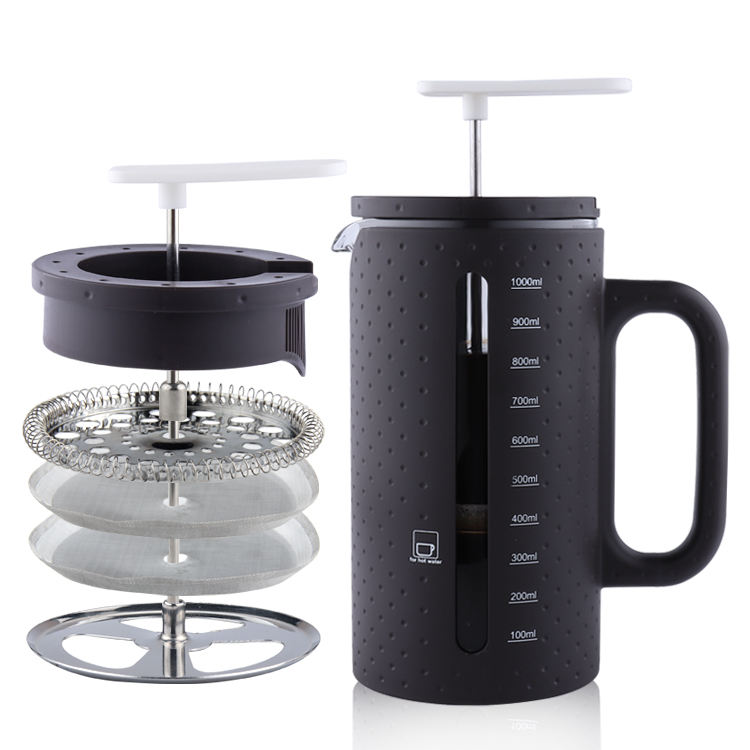 Caffettiera French Press in Vetro con Telaio in Plastica Emode, Bestseller con Pistone in Acciaio Inox per Caffè e Tè