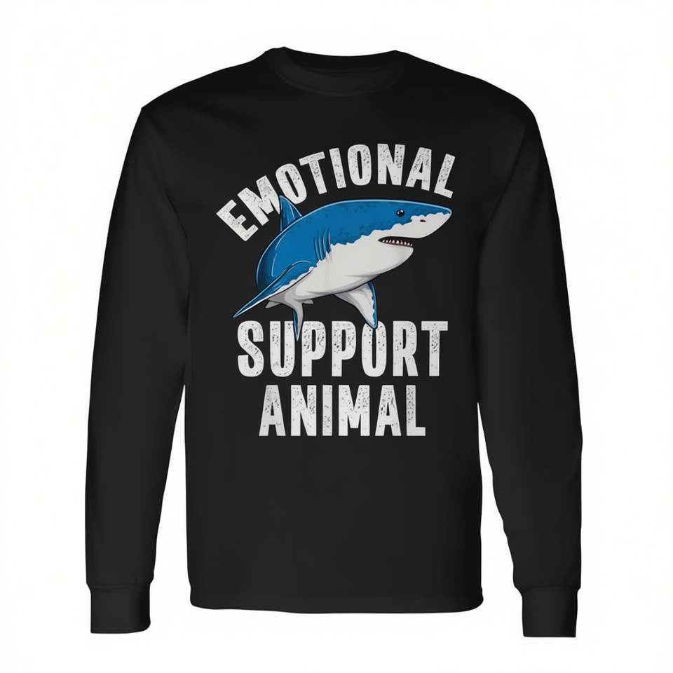 Maglietta a maniche lunghe con motivo squalo Emotional Support Animal, design a tema oceano, abbigliamento unisex per adulti