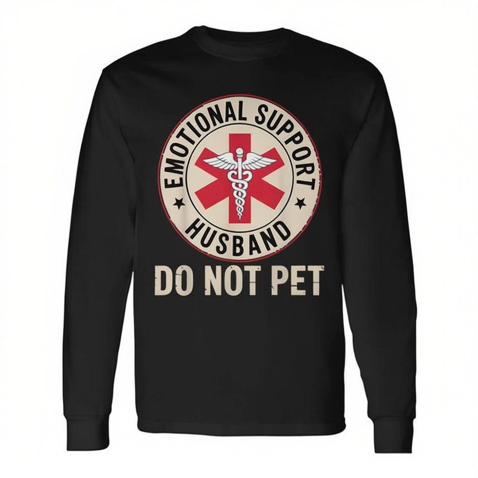 Maglietta a maniche lunghe Emotional Support Husband Do Not Pet, girocollo unisex, regalo di nozze per adulti