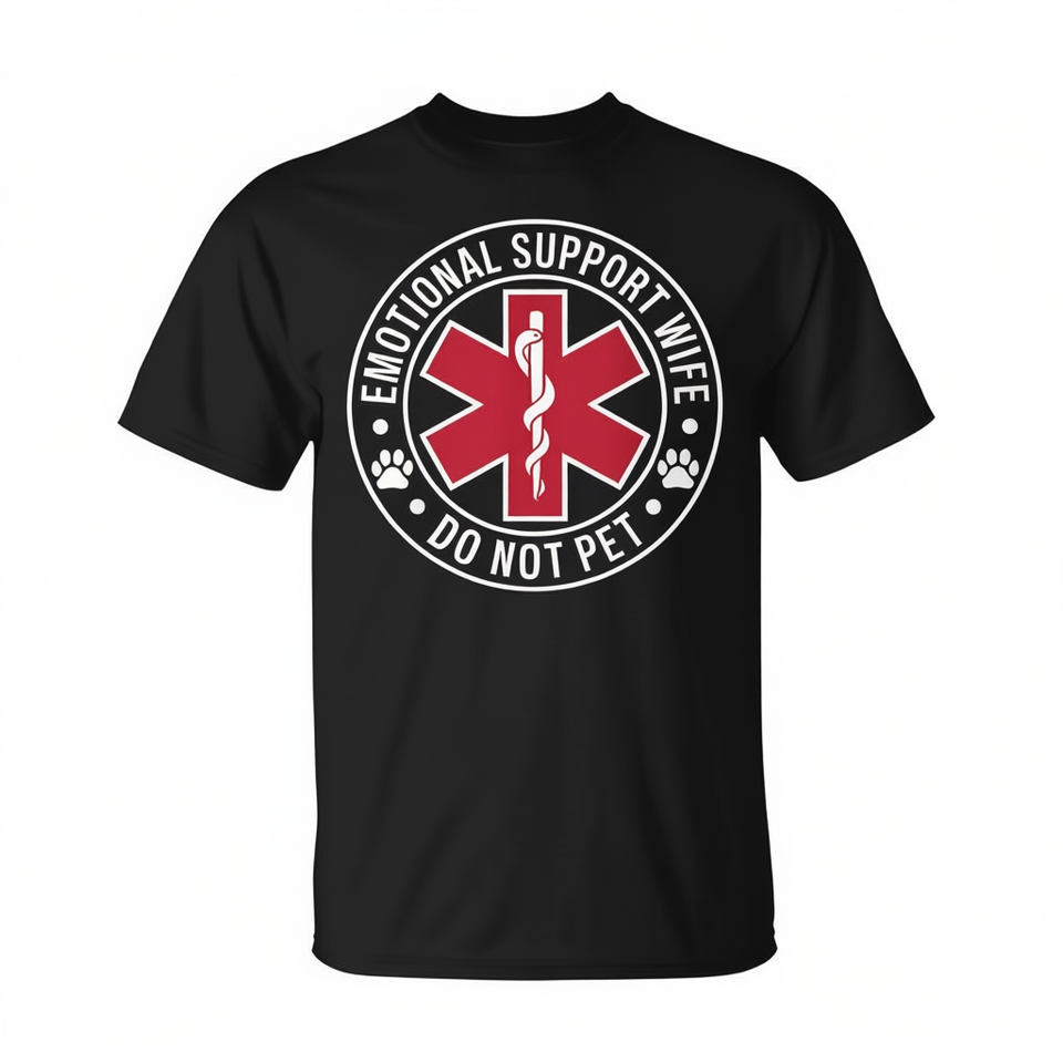 T-shirt Emotional Support Wife Do Not Pet da donna, girocollo nero