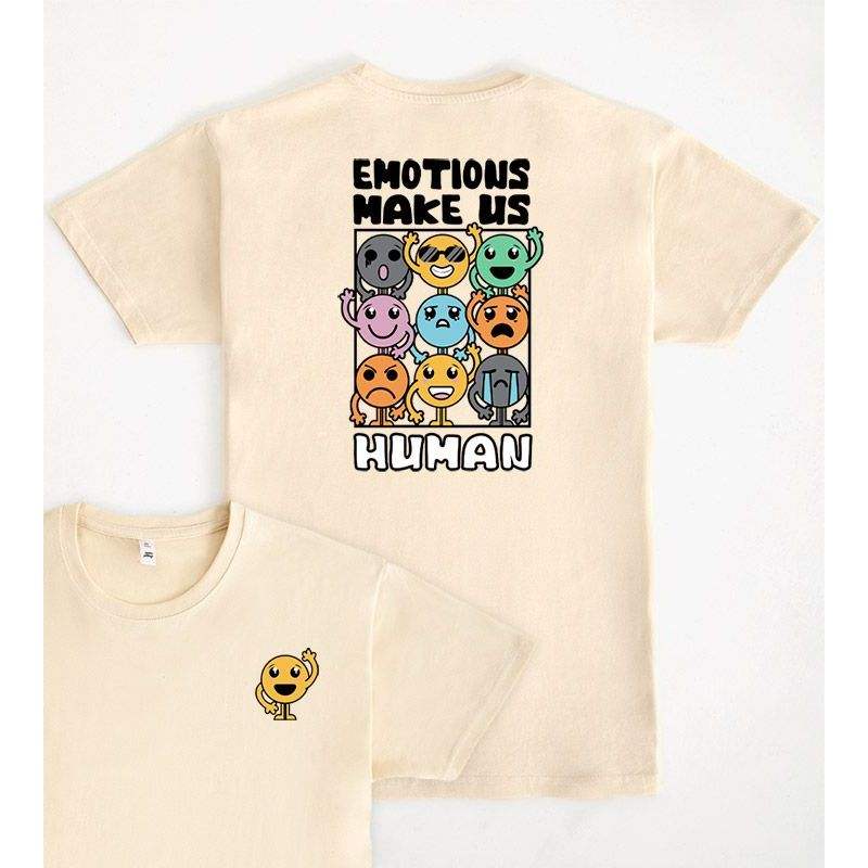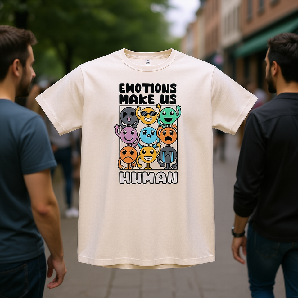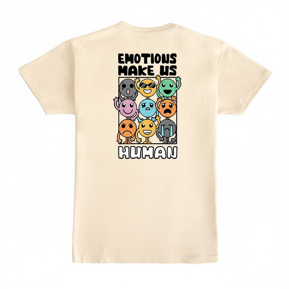 T-shirt Emotions Make Us Human, t-shirt grafica in cotone girocollo unisex per adulti