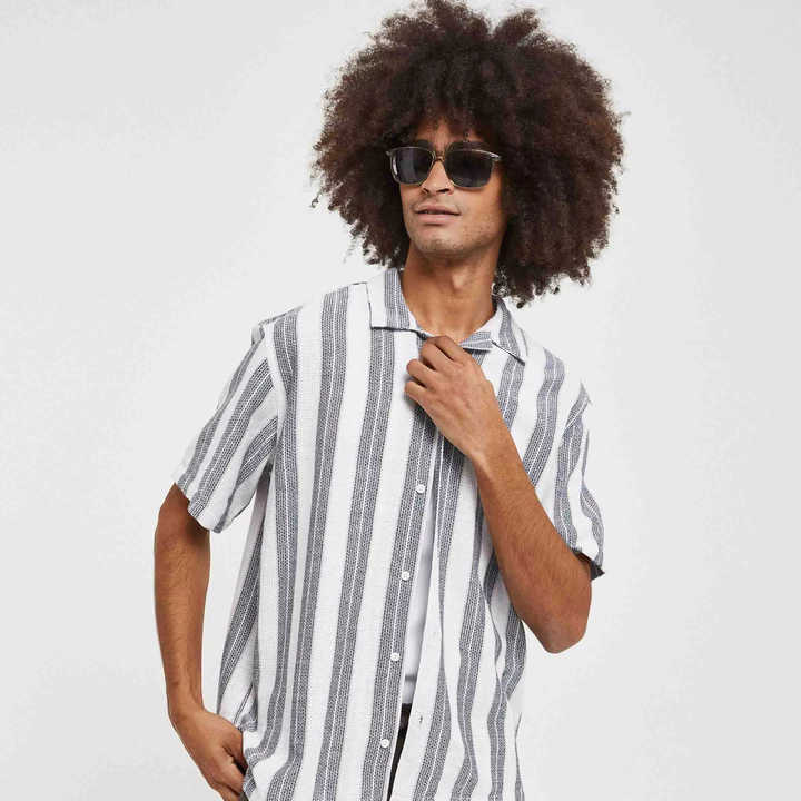 Camicia Estiva da Uomo Imperio Shop, Comoda e Casual, Strutturata con Stampa a Righe, Design Moderno, Vestibilità Regolare, Blu