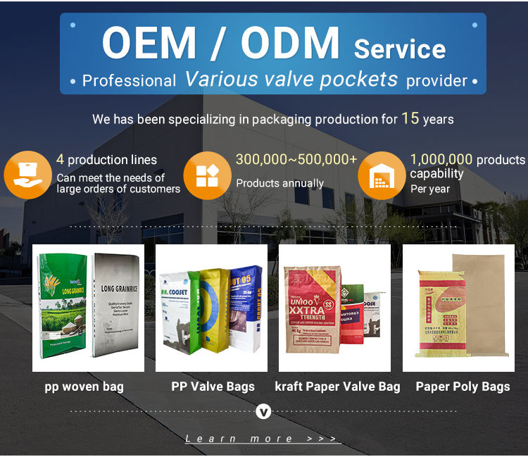 Sacchi Vuoti Personalizzati da 25kg in Polipropilene PP per Cemento con Valvola Fornitore