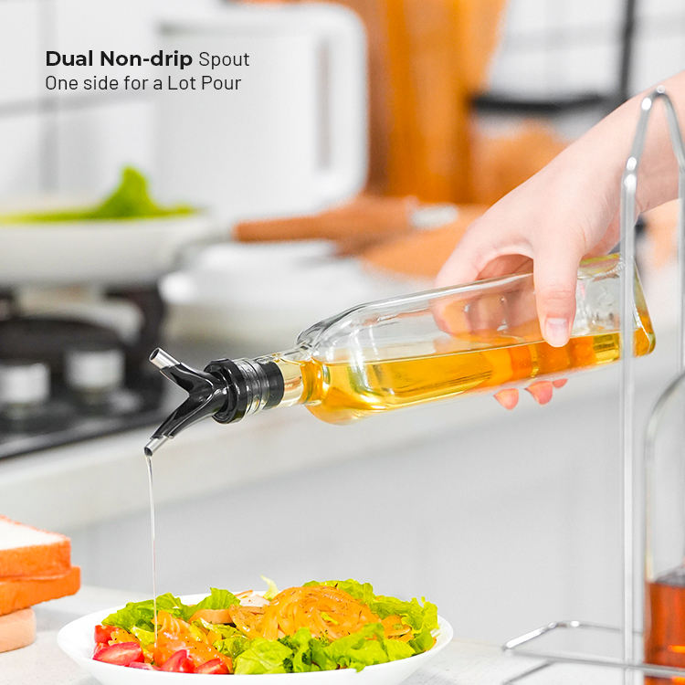 oil bottle set with rack, 2 openings Lidfunctional design