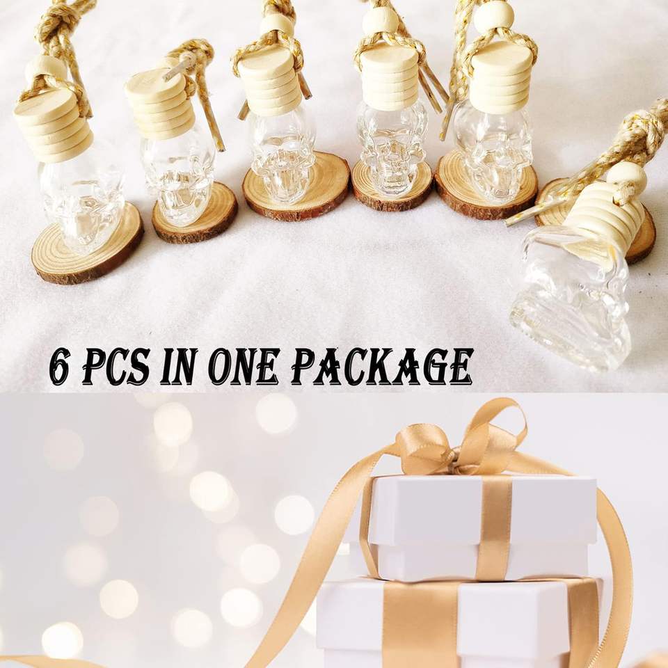 Testa vuota a forma di teschio da 8ml bottiglia di vetro profumo per auto diffusore di cristallo per aromaterapia bottiglia con corda appesa