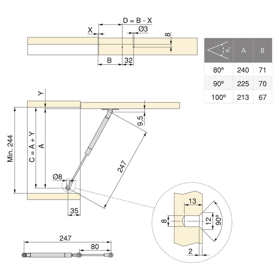 Emuca 12mm Diameter Lift-Up Door Piston 5kg Hooks Steel and Plastic Matte Nickel Kitchen Hardware