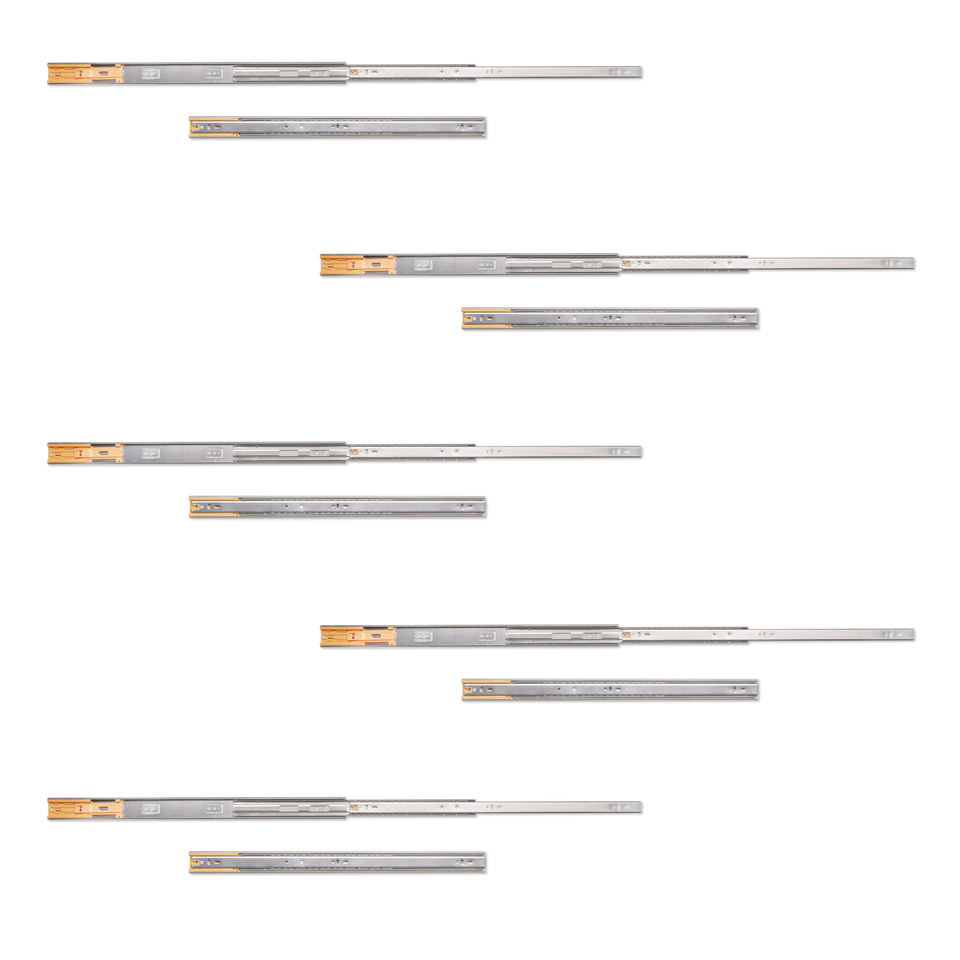 Emuca Set of 5 Soft Close Full Extension Drawer Guides 45mm Height 600mm Depth with Ball Bearings