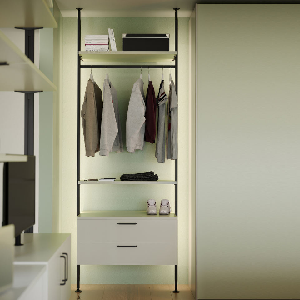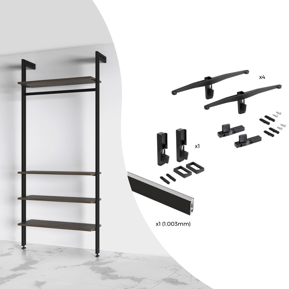 Emuca Spain 1m Long Office Furniture Kit 4 Wooden Shelves 1 Hanging Bar Zero Bracket Made Aluminum Zamak Plastic Painted Model