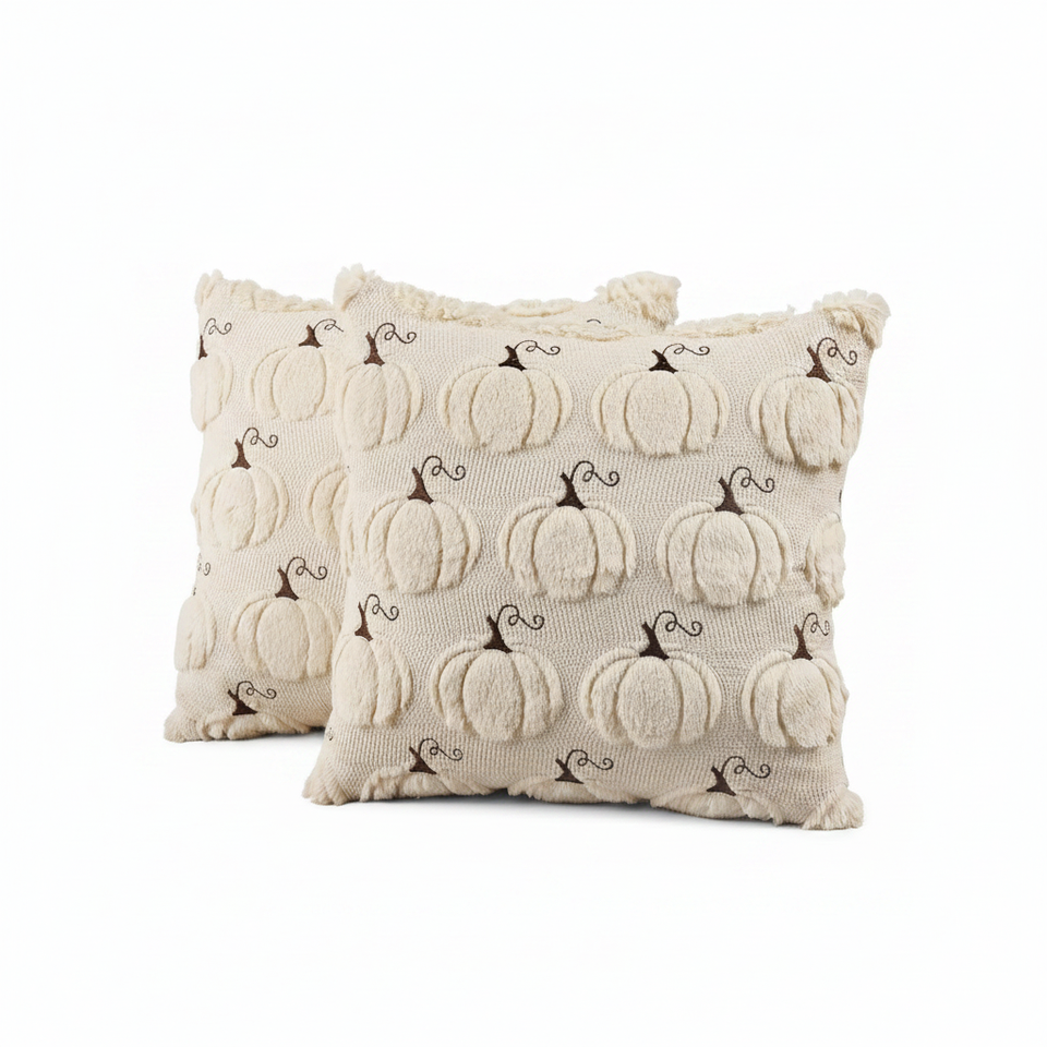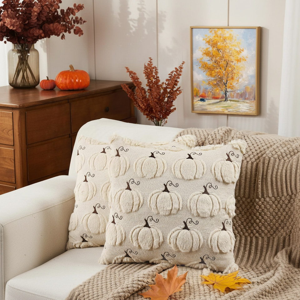 Emvency Confezione da 2 Federe per Cuscini 18x18 Beige Autunnale, Morbide in Peluche e Finta Pelliccia, Decorazioni per Cuscini a Tema Autunnale e Raccolto di Zucche