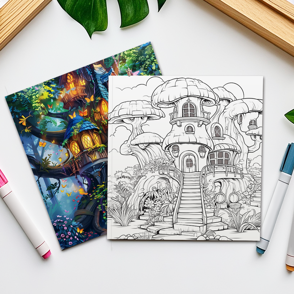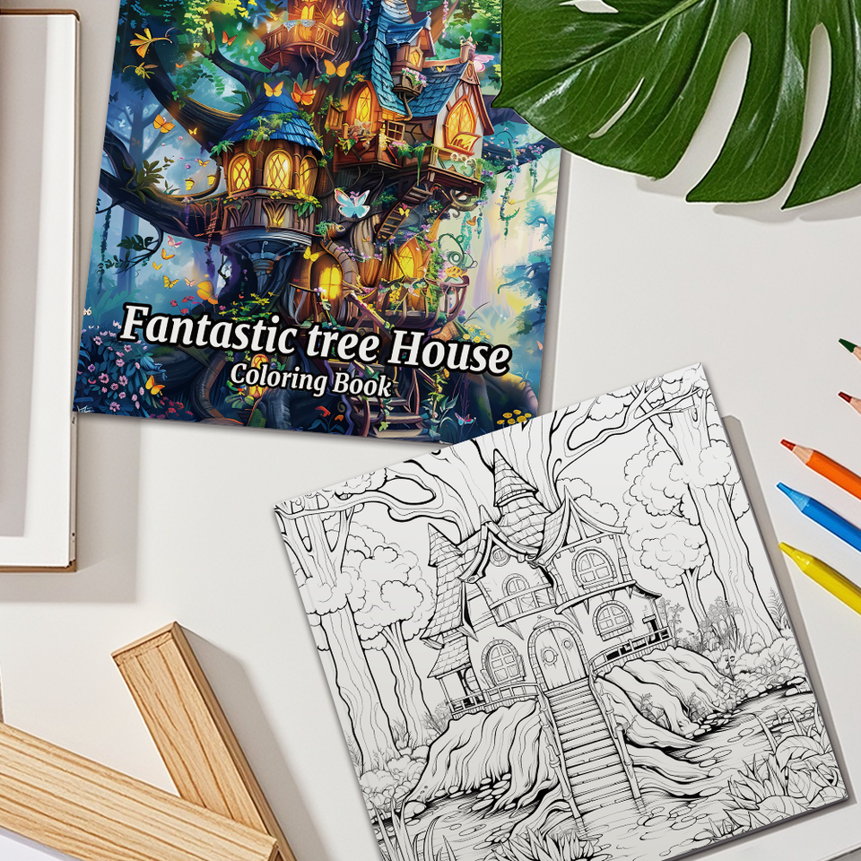 Libro di disegno fantasioso per gli amanti della natura libro da colorare per la casa sull'albero incantato libro da colorare di arte forestale