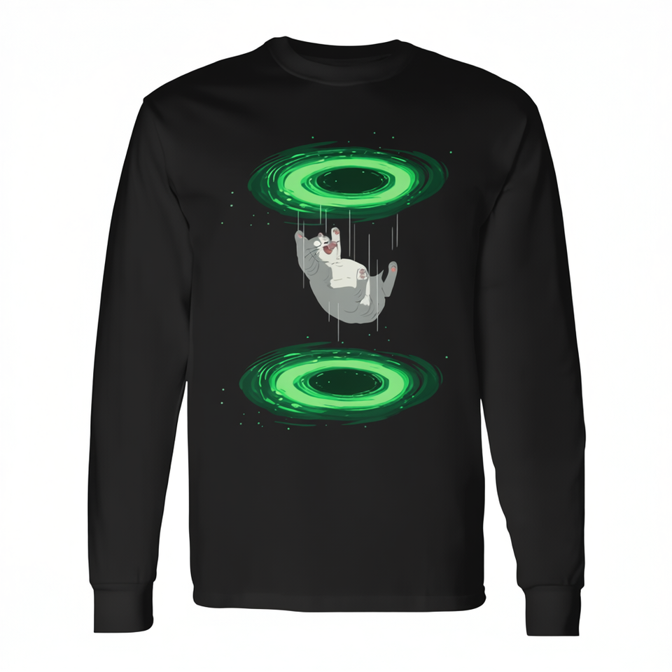 T-shirt a maniche lunghe Endless Fall Cat con outfit Portal per amanti dei gattini - T-shirt promozionale per amanti dei gattini