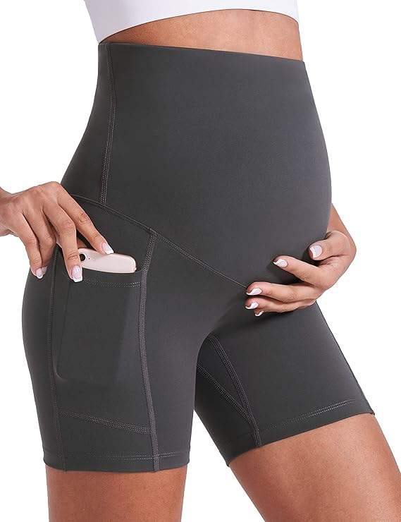 Enerful Women's Maternity Yoga Shorts Over the Belly Comfy Biker Workout Active Pregnancy Gym Short Pants with Pockets 8"/5"