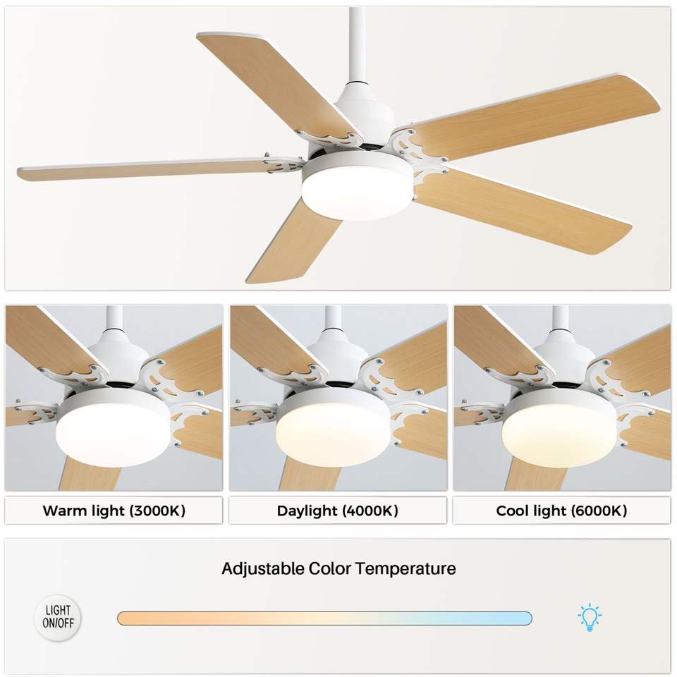 Risparmio energetico 42 pollici LED ventilatore da soffitto con 5 pale reversibili silenziosi motore a corrente continua telecomando e luce a LED