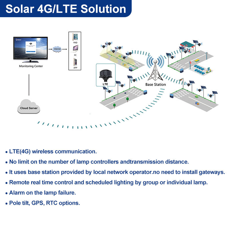 Luce stradale solare a risparmio energetico controllo Wireless 4G/LTE lampada Controller SSLS Cloud Management per illuminazione stradale urbana
