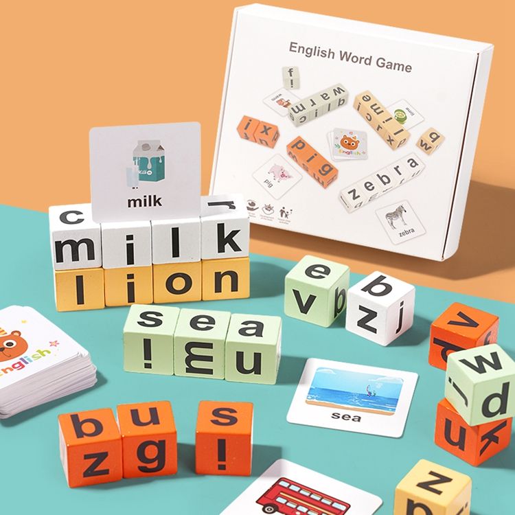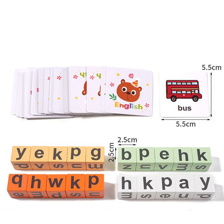 Cognition game wooden letter spelling magic cube blocks with cardsProduct name