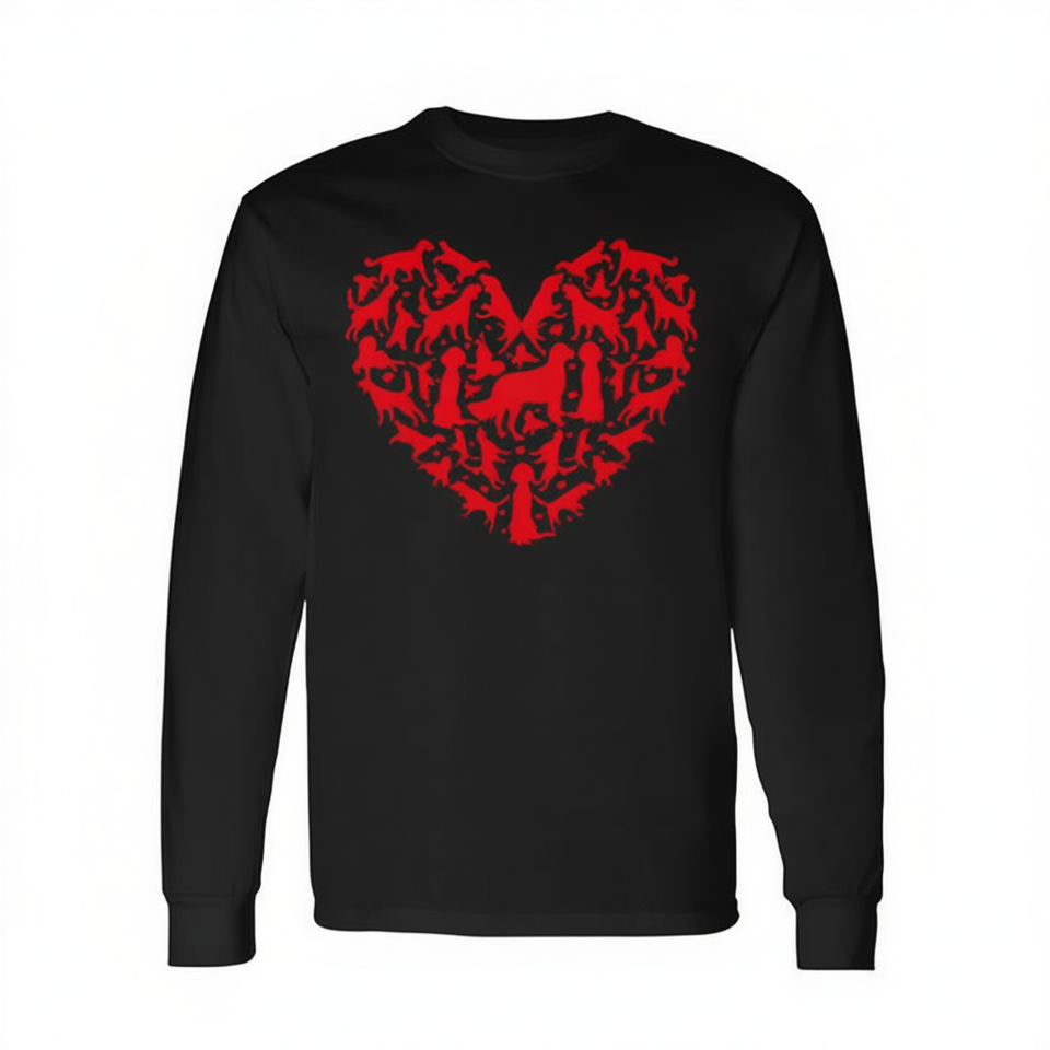 T-shirt promozionale a maniche lunghe per amanti del cane English Setter, con cuore, per proprietari di cani English Setter, per San Valentino