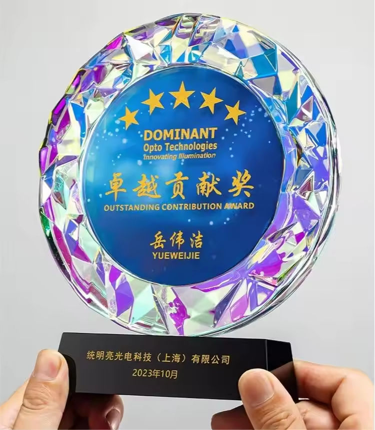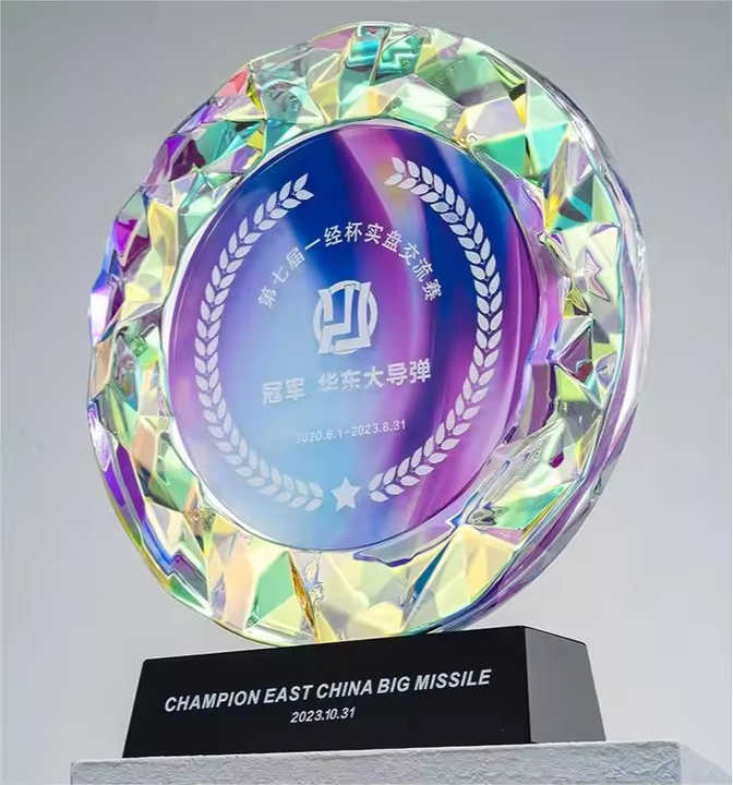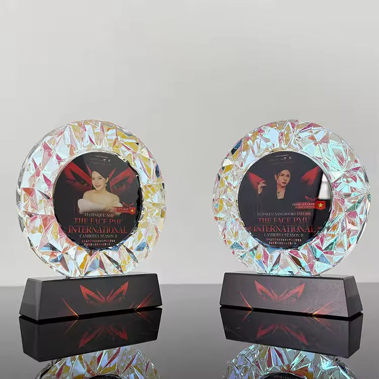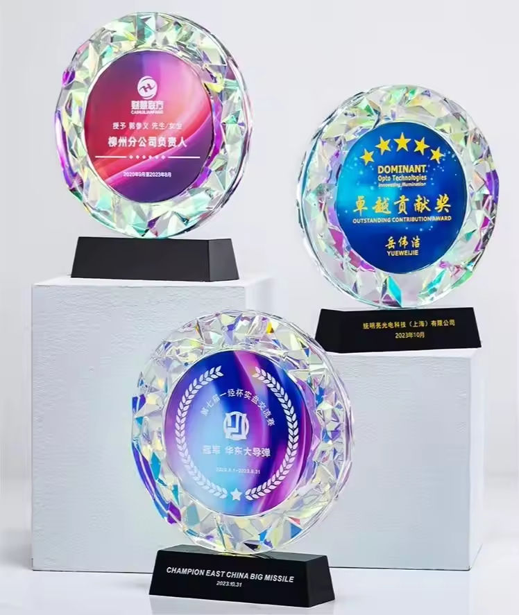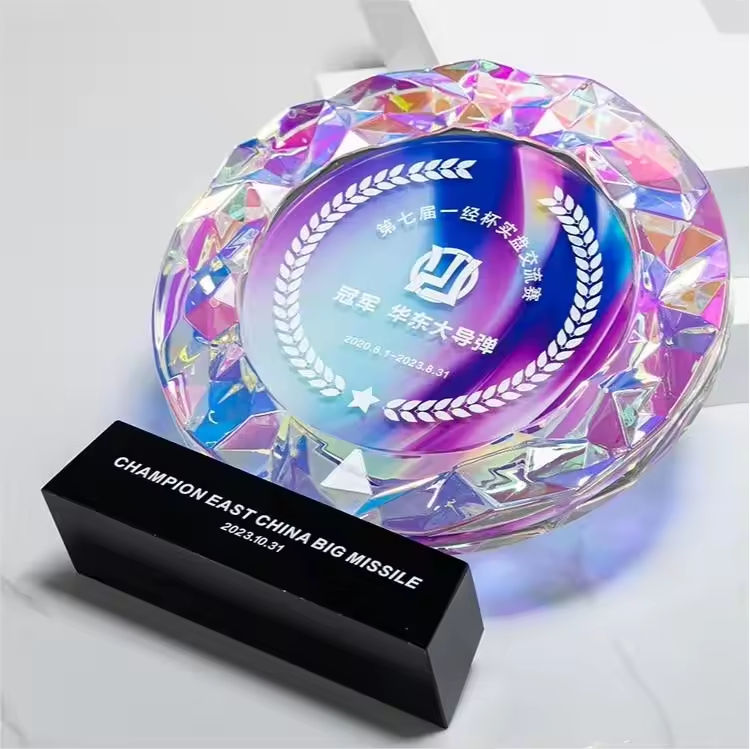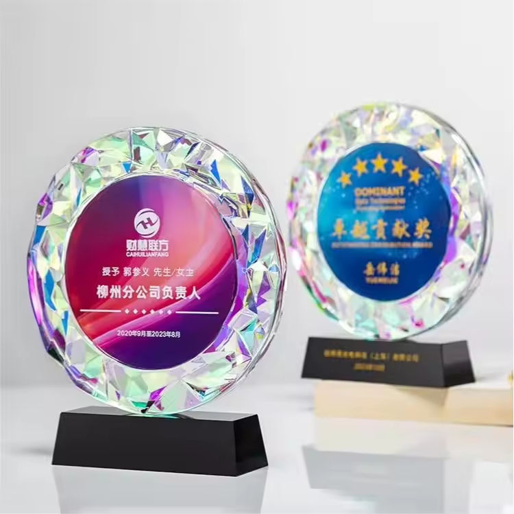 Trofeo di cristallo inciso nome individuale inciso rotondo cristallo colorato trofeo personalizzato