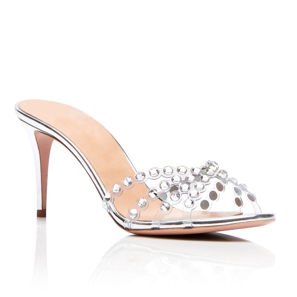 Enmayer Slip incolore su tacchi alti da 3 pollici da fornitori verificati scarpe con tacchi medi diamantati da donna