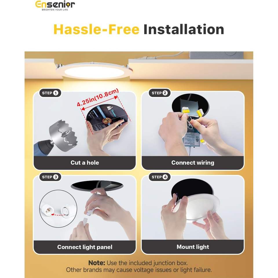 Ensenior Confezione da 12 Faretti LED da Incasso da 4 Pollici, Dimmerabili, 5000K Luce Diurna, 750LM Alta Luminosità, 9W 120V, Resistenti all'Umidità, Certificati ETL