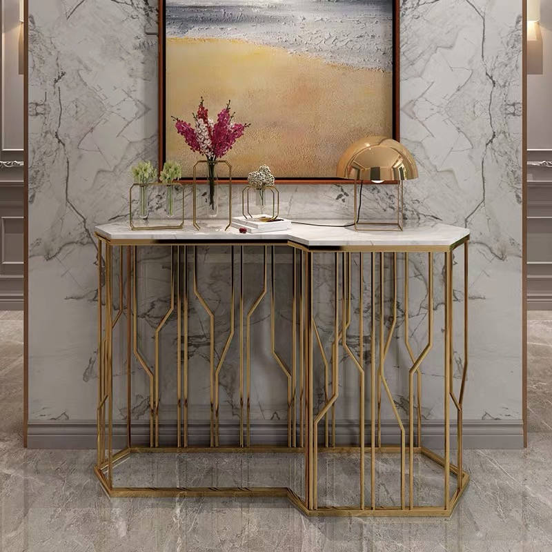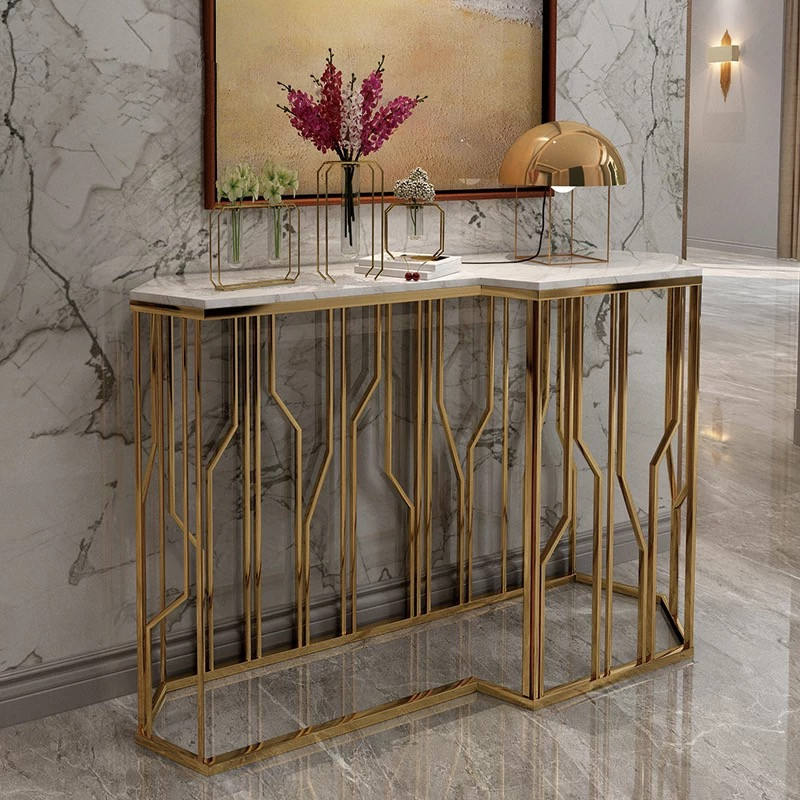 Consolle Dorata per Ingresso e Corridoio, Arredamento Moderno di Lusso per Soggiorno, Entrata e Hall d'Albergo